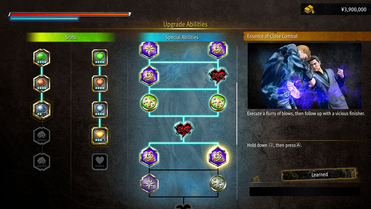 As melhorias nas habilidades de Kiryu lhe dão acesso ao seu conjunto de habilidades mais diversificado até o momento. Complete missões e treine para moldar Kiryu como você achar melhor.