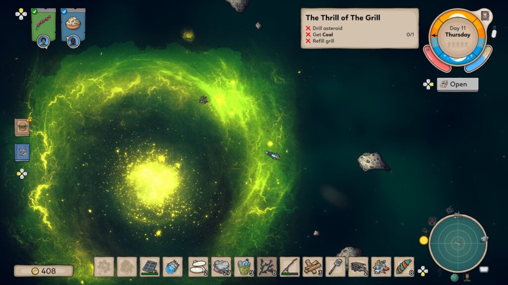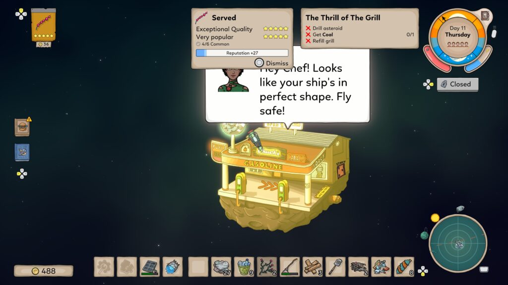 O jogo, como bem entrega o título, é um simulador de vida para um cozinheiro espacial. Em nosso trailer cósmico, temos a responsabilidade, herdada de nossa querida avó, de alimentar uma infinidade de clientes famintos por todo o sistema solar e, para tanto, precisamos expandir o negócio, descobrir novas receitas deliciosas e explorar lugares onde nenhuma pessoa ousou cozinhar.